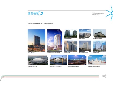 2009 建筑领域 CSCEC Sustainability Report 可持续发展报告 2009年获得中国建筑工程鲁班奖12项 深圳星河发展中心 中国石油大厦 沈阳海关业务设施楼 k8凯发大厦(长沙) 哈尔滨医科大学门诊保健大楼 数字北京大厦 厦门海关业务办公楼 中国凤凰大厦 上海交通大学体育馆 淮南市体育文化中心比赛馆 武汉天河机场航站楼工程 灵山胜境三期工程梵宫建筑 29