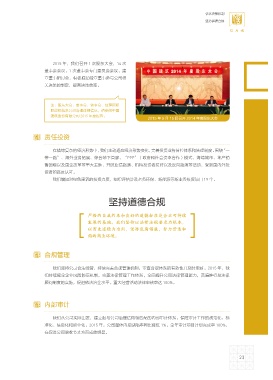 人事与薪酬委员会 我们坚持公司合法经营,持续完善合规管理机制,审查合规体系的有效性并及时更新。2015 年,我