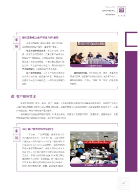等各业务线依据相关的评价建议和意见,持续改进产品品质及服务质量。2015 年,保修期内的工程抽样客户总 为客户提供更加方便、快捷、优质高效的服务。 服务接听人员统一培训